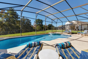 Large private South-West facing heated pool and spa with gorgeous conservation outlook. A fabulous way to relax, wind down and cool off after returning from the theme parks, golf course or other fabulous activities that central Florida offers. The Covered Lanai with fan provides a shaded area to casually dine and relax. For those staying with children there is a Pool Safety fence provided for your use.
