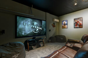 Movie & Game Room with over 100″ projection screen, complete with Xbox one and Full size competition standard Air hockey Table